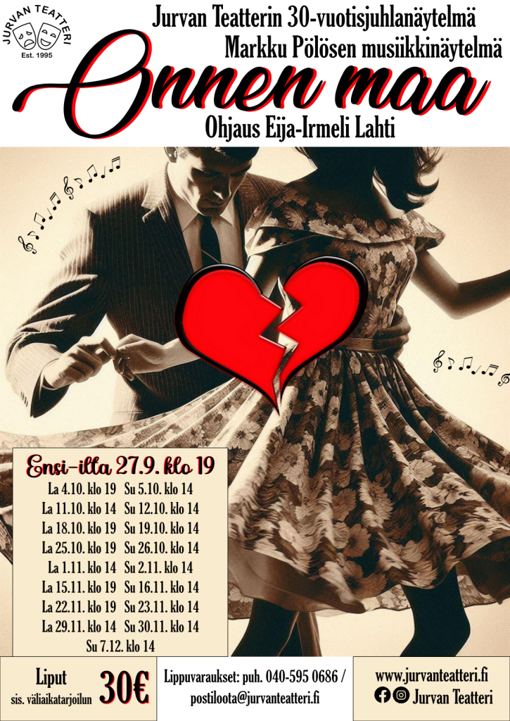 Syyskuussa Jurvan Teatterissa saa ensi-iltansa 30-vuotisjuhlanäytelmä Markku Pölösen musiikkinäytelmä Onnen maa. Näytelmän ohjaa Eija-Irmeli Lahti.